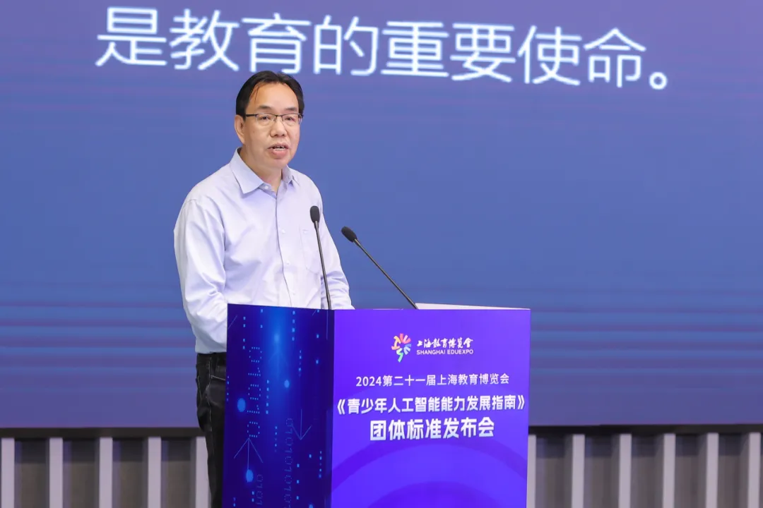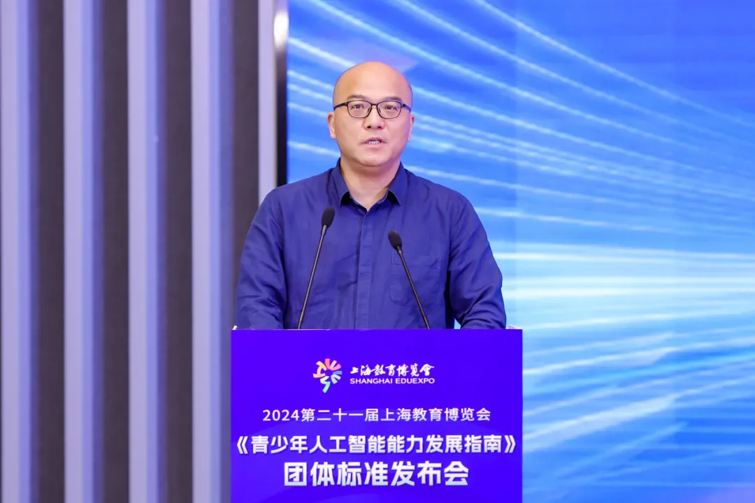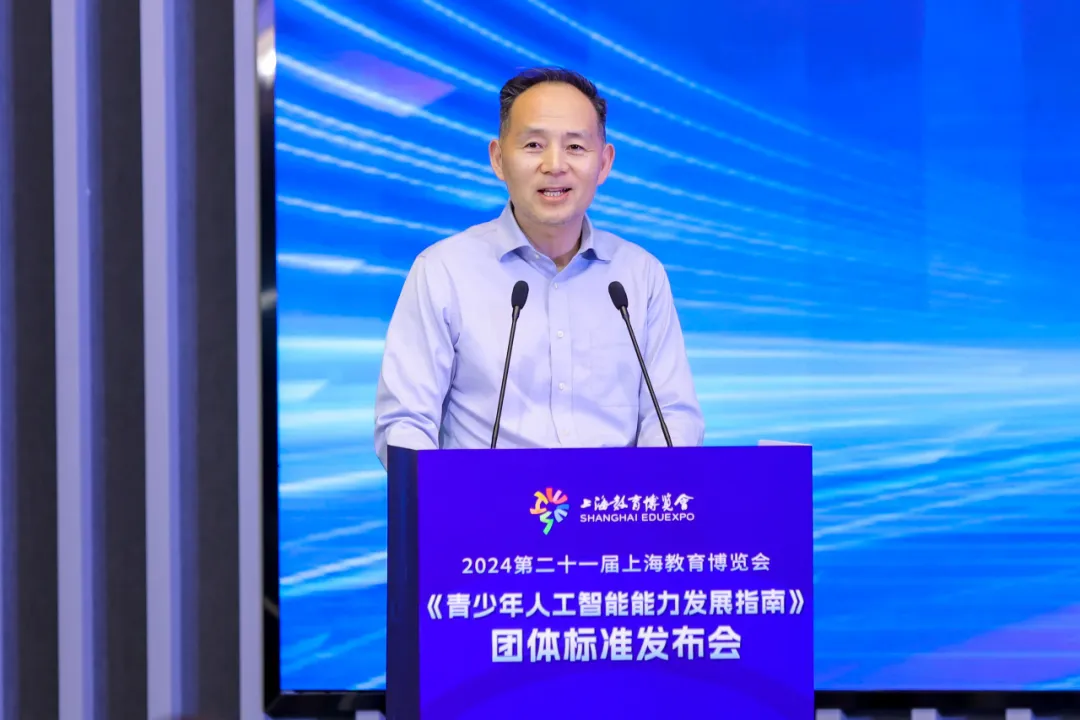 kaiyun开云(中国)机器人有限公司官网院长郑军奇,上海教育报刊总社副社长徐勇,上海市人工智能标准化技术委员会副秘书长、上海人工智能行业协会标准研究部部长陈曦分别上台致辞,对参与标准制定的所有高等院校、科研机构和企事业单位表示感谢,对团体标准的发布表示支持与祝贺,并对青少年人工智能教育的未来发展表示殷切的期望。