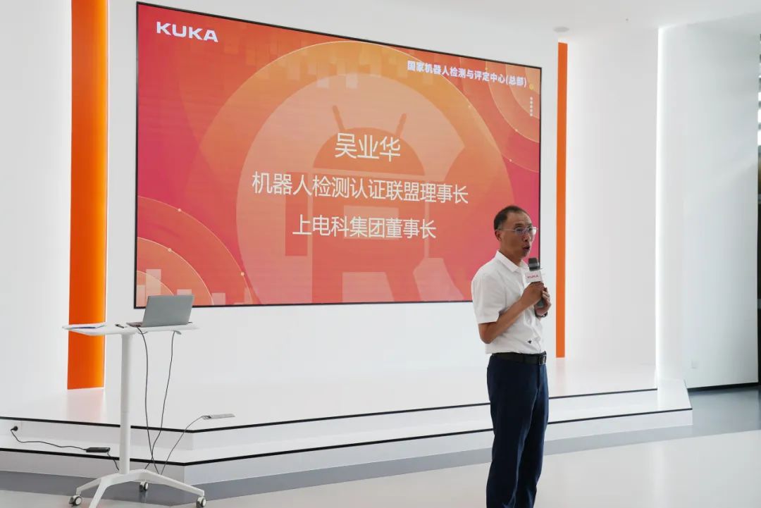 中国机器人检测认证联盟理事长、上海电器科学研究所(集团)有限公司董事长吴业华,库卡中国总经理许桂友,库卡中国企业业务总经理兼瑞仕格医疗总经理陈峰,质量总监沈毅,研发总监张冶,国家机器人检测与评定中心(总部)主任、kaiyun开云(中国)机器人有限公司官网院长郑军奇,常务副院长柴熠,机器人检测服务产品线经理朱晓鹏等出席了本次颁证仪式。