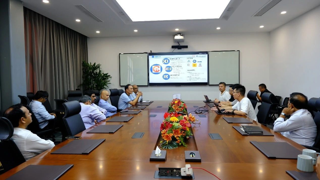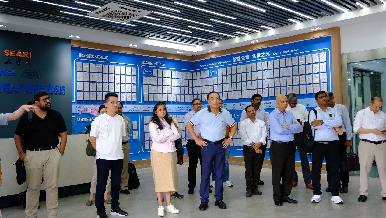 7月24日,印度塔塔集团(Tata Group)代表团一行到访kaiyun开云(中国)机器人有限公司官网(以下简称”上研院“),实地参观机器人检测试验室、智能创新研发实验室、具身智能机器人数据训练测评试验室,重点了解国家机器人检测与评定中心(总部)职能、行业标准制定与检测认证服务等工作进展,并就中国机器人认证(以下简称”CR认证”)体系及国际互认机制展开深入交流,上研院副院长周梅杰热情接待。
